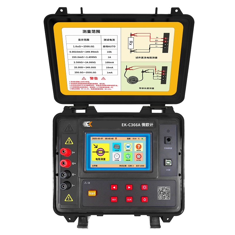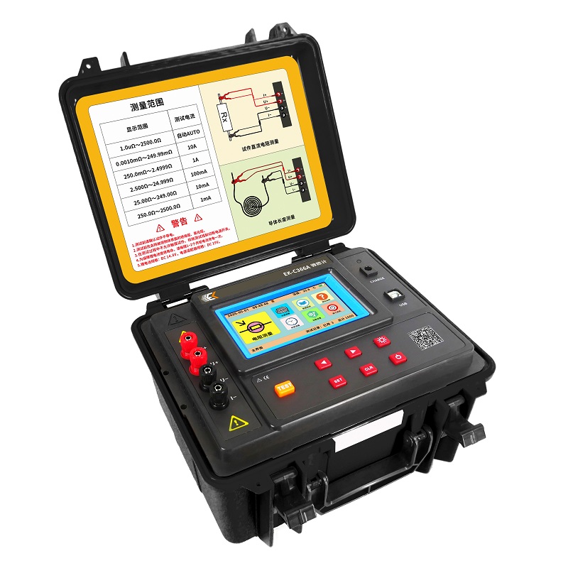 最大测试电流10A,宽量程:1.0uΩ~2500Ω,高分辨率0.1uΩ。