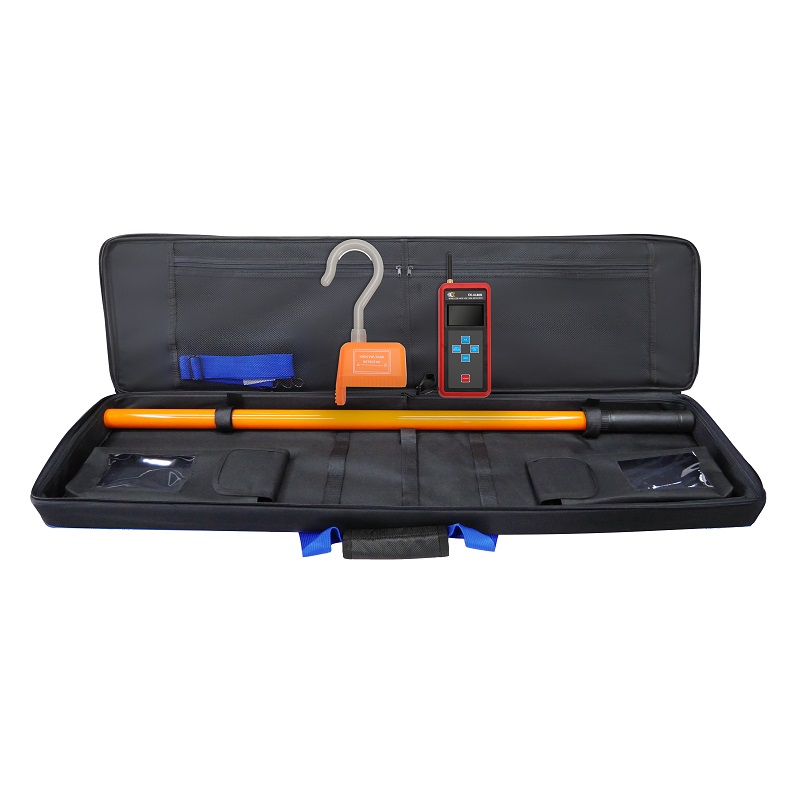国内首创!用绝缘杆将探测器挂在高压线路上,即可验电并显示高压线路电压及电流。